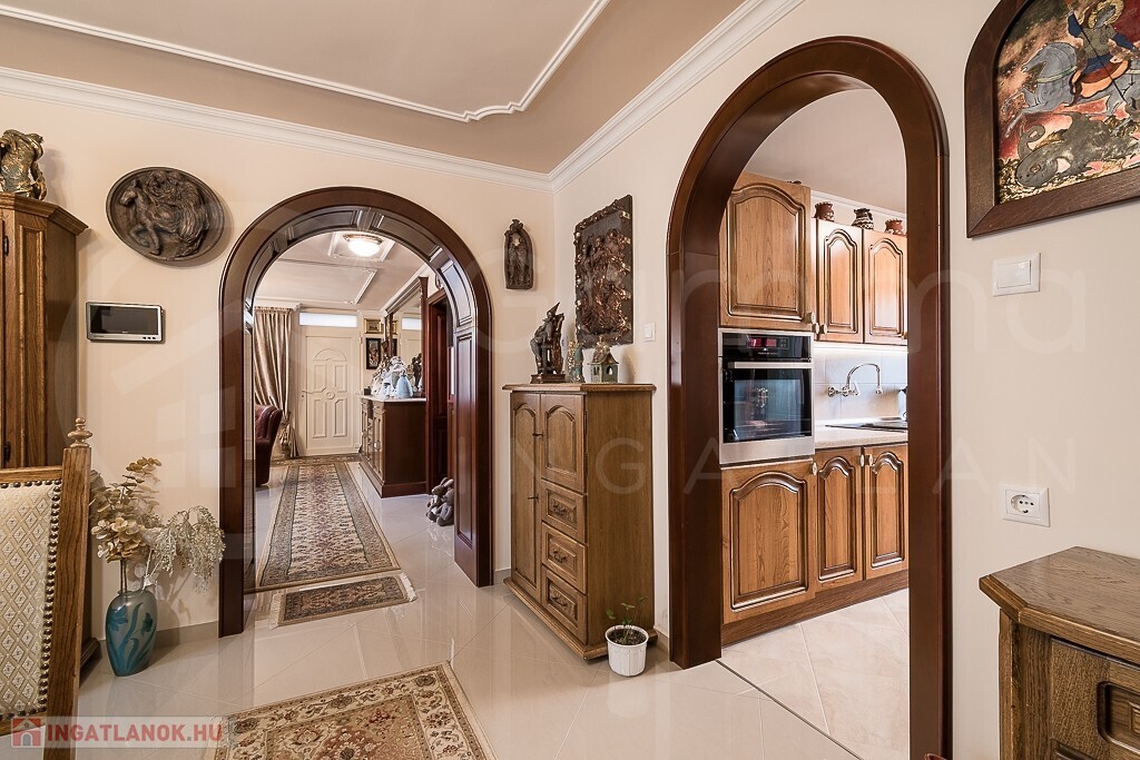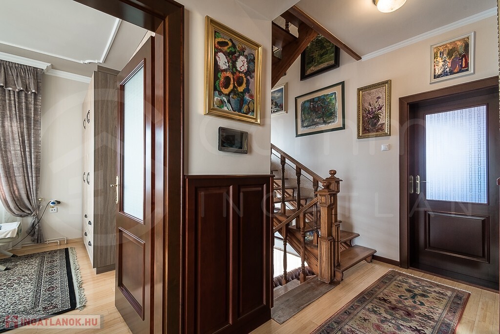 - A belső tereket minőségi, egyedi tervezésű fa ajtók és a hozzájuk illő falburkolatok teszik otthonossá és elegánssá.
