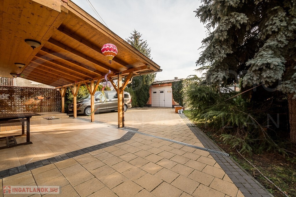 Az udvaron egy 45 m²-es, fűthető garázsépület is helyet kapott, melyben beépített konyhasarok, saját szauna, zuhanyzó és WC került kialakításra. Tökéletes vendégháznak, műhelynek vagy egy privát wellness-részlegnek!