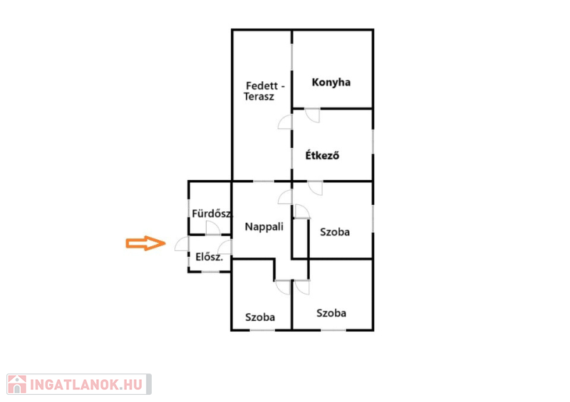 A 79 m²-es, vegyes falazatú ház 3 tágas szobát kínál, ideális elrendezéssel.