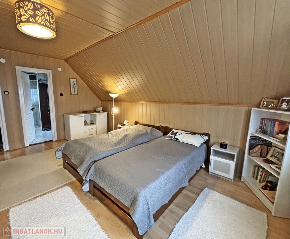Üdvözlöm Önt a Balaton egyik legszebb részén! A 2004-ben épült nettó 162 nm alapterületű ingatlan igényes és kényelmes. Mindkét szinten megtalálható a tágas nappali konyhával, a 4 szoba mindegyikéhez saját fürdőszoba is tartozik, és a földszinten egy szauna is rendelkezésre áll. A gázkazán egy külön helyiségben található, mely a ház központi fűtéséről és melegvíz ellátásáról gondoskodik. A hőmérséklet szabályozható még klímákkal is, így a nyári melegben is kellemes a bent tartózkodás. A felső szint érdekessége, hogy a nappali egy kellemes zöld környezetben található étkező teraszra nyílik, mely a ház mögötti lépcsősoron keresztül is megközelíthető, valamint a szobákhoz egy napozóterasz is tartozik, ahonnan a Balatonra néző csodás panorámában gyönyörködhet.