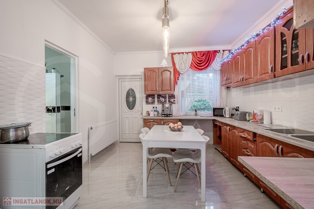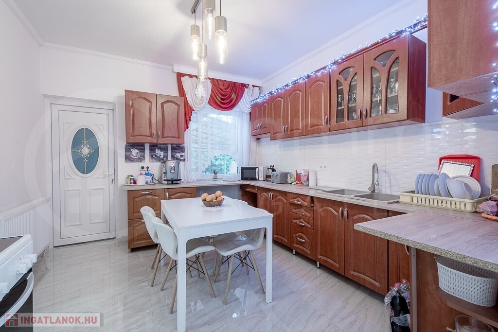 - Belső burkolatok: Frissen festett falak, a szobákban új laminált padló, a többi helyiségben járólap található. A vizesblokkok részben csempézettek.