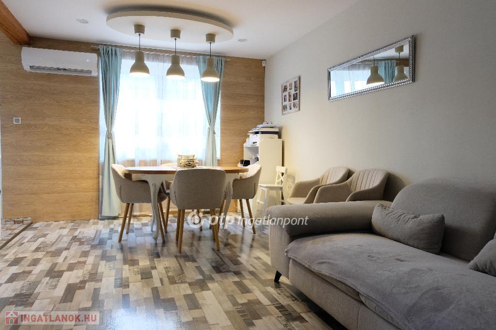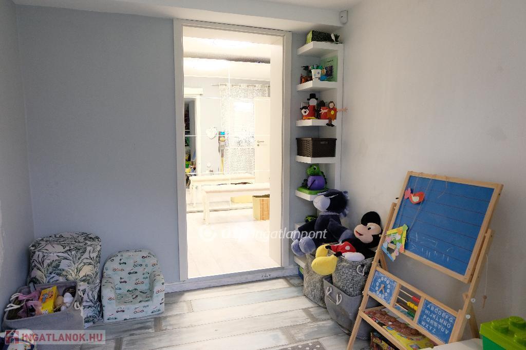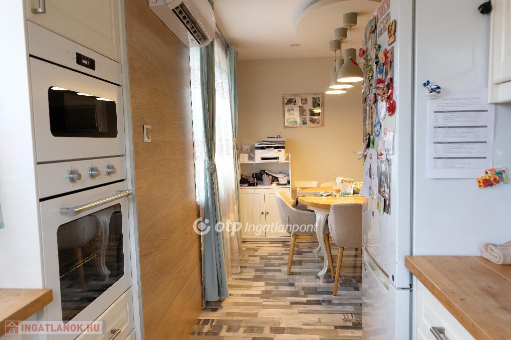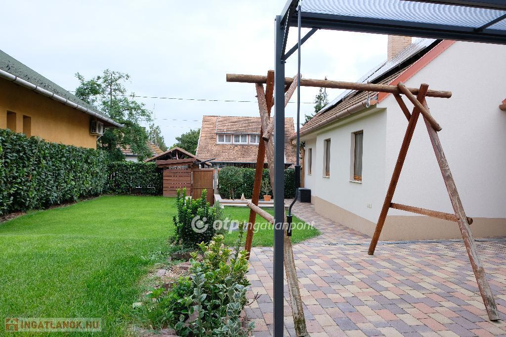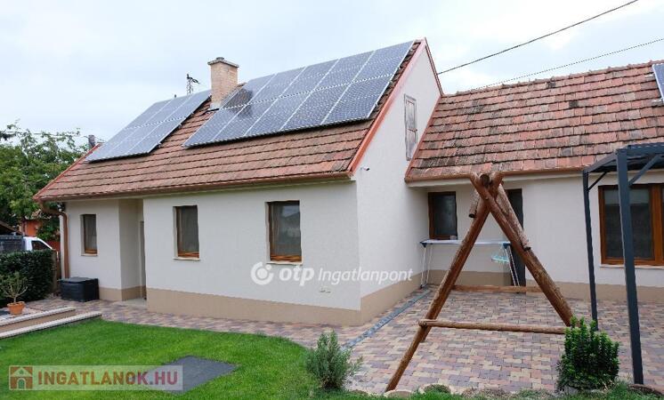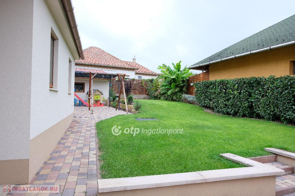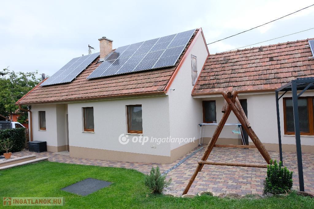 Eladásra kínálunk Fóton, központi elhelyezkedéssel egy teljeskörűen felújított, 110 m?-es családi házat, melynek része egy különálló, 40 nm- es garázs is. Az ingatlan egy 365 m?-es, parkosított telken található, ahol automata öntözőrendszer, napfényes terasz és gondosan ápolt, csodaszép kert várja új tulajdonosát. Főbb jellemzők: A nettó lakótér 70 nm, kívül-belül felújítva, két külön nyíló hálószoba, melyeket tágas gardróbhelyiség köt össze, világos nappali-étkező, különálló modern konyha, ízléses fürdőszoba káddal, beépített mosó- és szárítógéppel, praktikus tárolási lehetőségek, padlás, pince és garázs. A házon napelemrendszer található H tarifával, ez rendkívül alacsony rezsit eredményez. Teljesen fenntartható, gázmentes a ház, elektromos padlófűtés és hűtő-fűtő klíma biztosítja télen a meleget és nyáron a hűtést. A ház modern belső terekkel és minőségi burkolatokkal rendelkezik, így azonnal költözhető állapotban van. A kert ideális családoknak, pároknak, nyugodt pihenéshez vagy baráti összejövetelekhez, egy valódi oázis Fót központjában. Minden a közelben van, amire csak szükség lehet! Iskola, óvoda, boltok, tömegközlekedés.