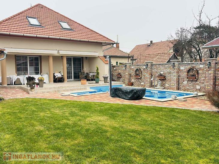 Eladásra kínálunk Fót közkedvelt és könnyen megközelíthető részén egy kivételes adottságokkal rendelkező, 320 m²-es, két szintes luxus családi házat, amelyhez egy igényesen kialakított, 622 m²-es telek tartozik.