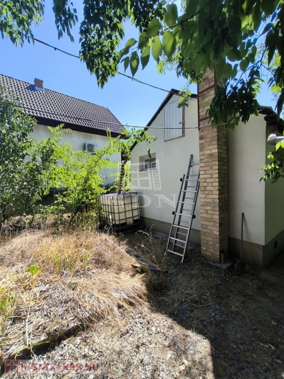 Az előkert alkalmas több autó beállására is. A hátsó kertben hatalmas cseresznyefa, 3 almafa, szilvafa nyújt árnyékot, oldalt mogyoróbokrok teszik intimmé a területet.