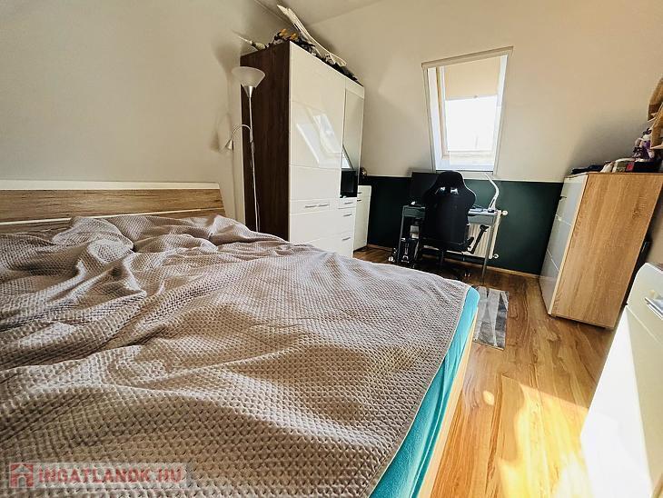 Az ingatlan DNY-i tájolásának köszönhetően egész nap világos. A földszinten előszoba, fürdőszoba, étkezős konyha és egy fényes nappali kapott helyet, amely közvetlen kapcsolatban áll a 9 nm-es terasszal és a saját használatú, 30 nm-es kerttel. Az emeleten két külön nyíló szoba és egy további fürdőszoba található.