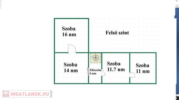 Elosztását tekintve a földszinten: 2 előszoba, 3 szoba, konyha, fürdőszoba és wc található. Az emeleten 1 előszoba és 4 szoba található.