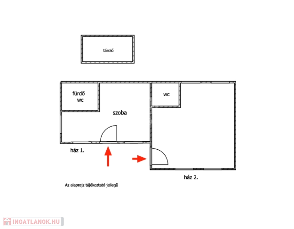 Az első ház egy nagy méretű nappaliból, és egy fürdőszobából tevődik össze. Amásdik ház egy nagy méretű légtér egyben. Az összes hasznos alapterület 145 nm, és 3 méteres belmagassággal bír. Tégla szerkezet, cserép tetővel.