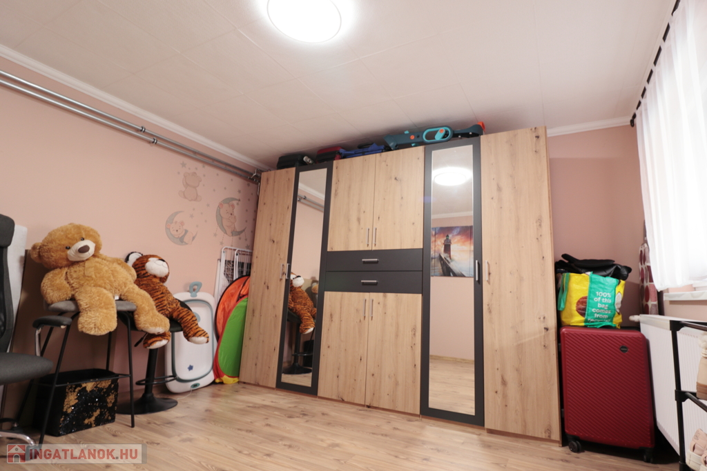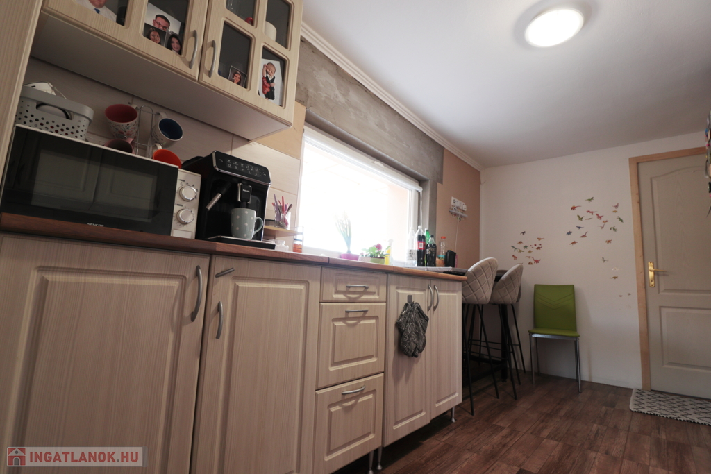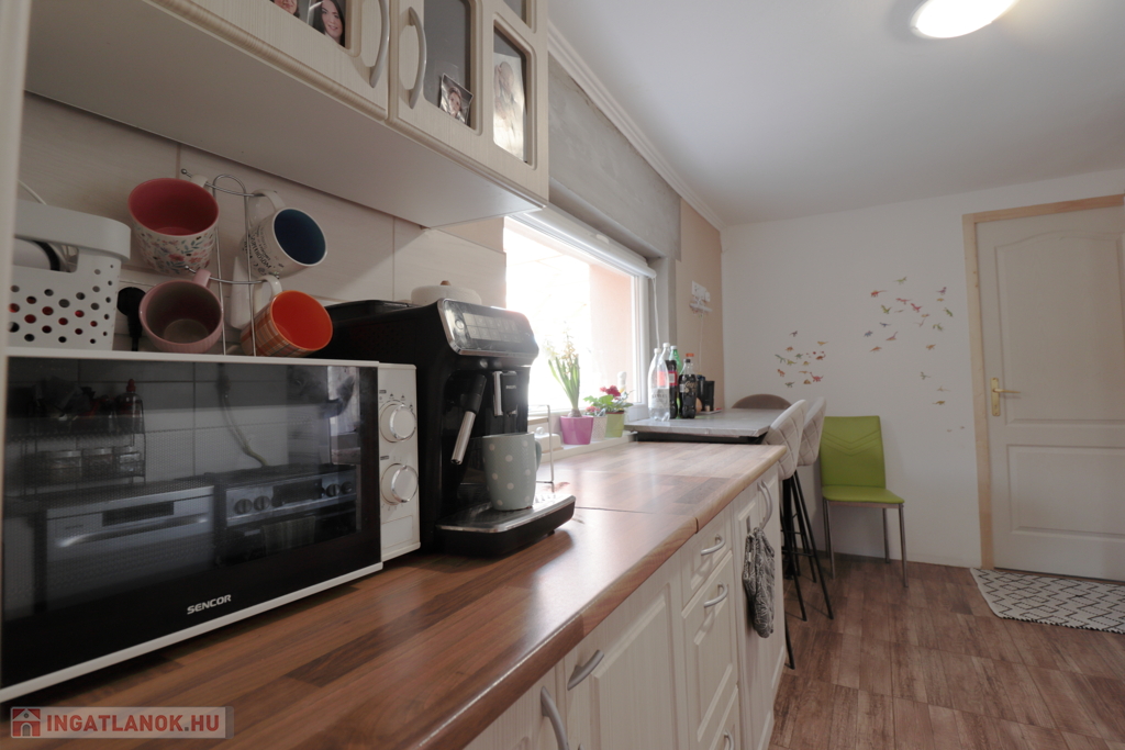 A ház jó elosztású, kényelmes szobákkal rendelkezik, tágas, napfényes terekkel, így családok számára ideális otthon. Az ingatlanban modern, gépesített konyha található szép burkolatokkal.