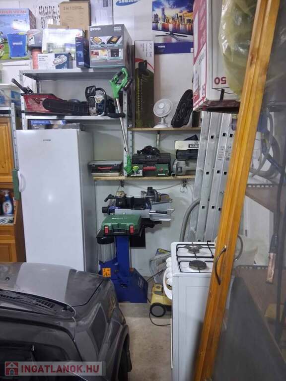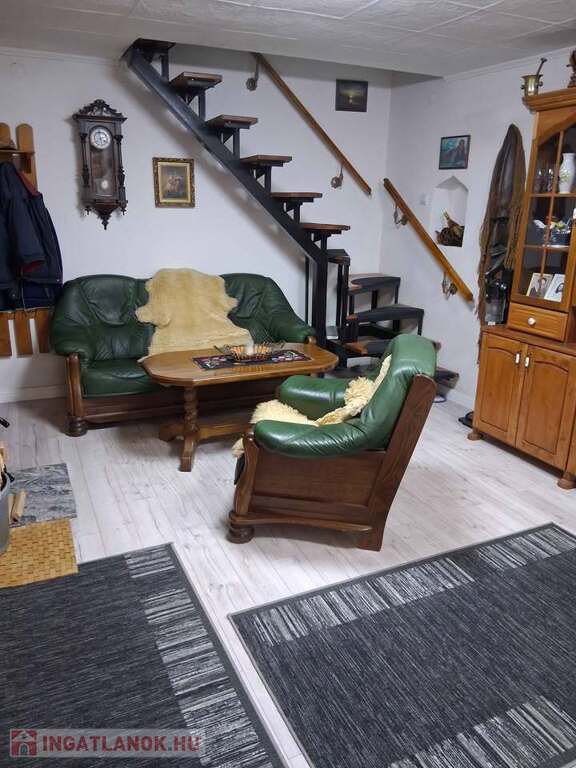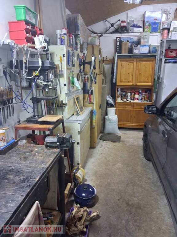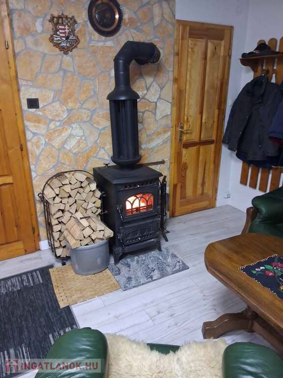 Az alsó szinten nappali, konyha, fürdő (WC-vel), spájz található. Az emeleten 2 szoba, előtér, mosdó wc-vel. Az épület fűtése vízteres öntvény látványkandallóval és radiátorokkal került kialakításra; továbbá 1-1 inverteres hűtő-fűtő klíma található az alsó és a felső szinten is. Az épülettel egybeépítve egy távirányítós kapuval ellátott 24 nm-es garázs is tartozik az ingatlanhoz. A garázs egyben műhelyként van berendezve értékes szerszámokkal (köszörűgép, oszlopos fúrógép, inverteres hegesztő, kéziszerszámok, Scheppack 8t rönkhasító stb.).