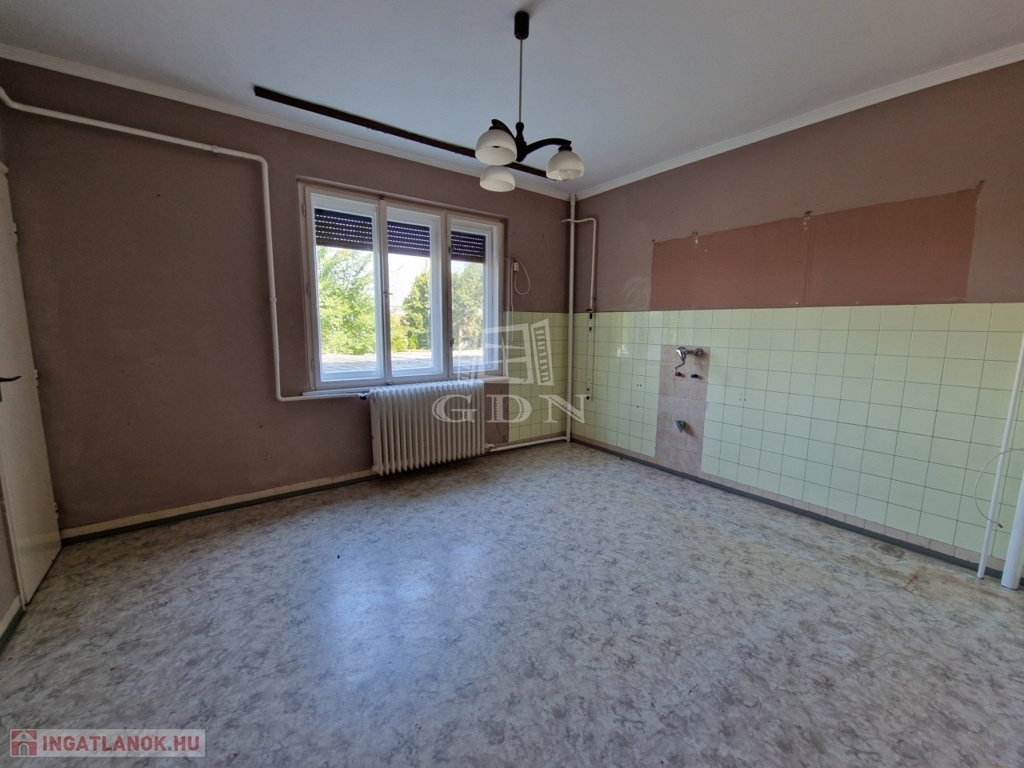 Megvételre kínálok Galgahévíz Fő útján, 651 nm-es telken, délnyugati fekvésű, nettó 106,29 nm, bruttó 174,36 nm-es, tégla falazatú, közepes/felújítandó állapotú, ikerfelet.