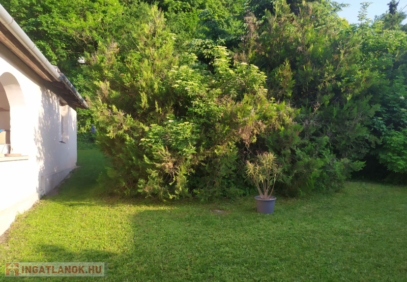 Telke enyhén lejtős, zöld növényeivel romantikus hangulatot kölcsönöz.