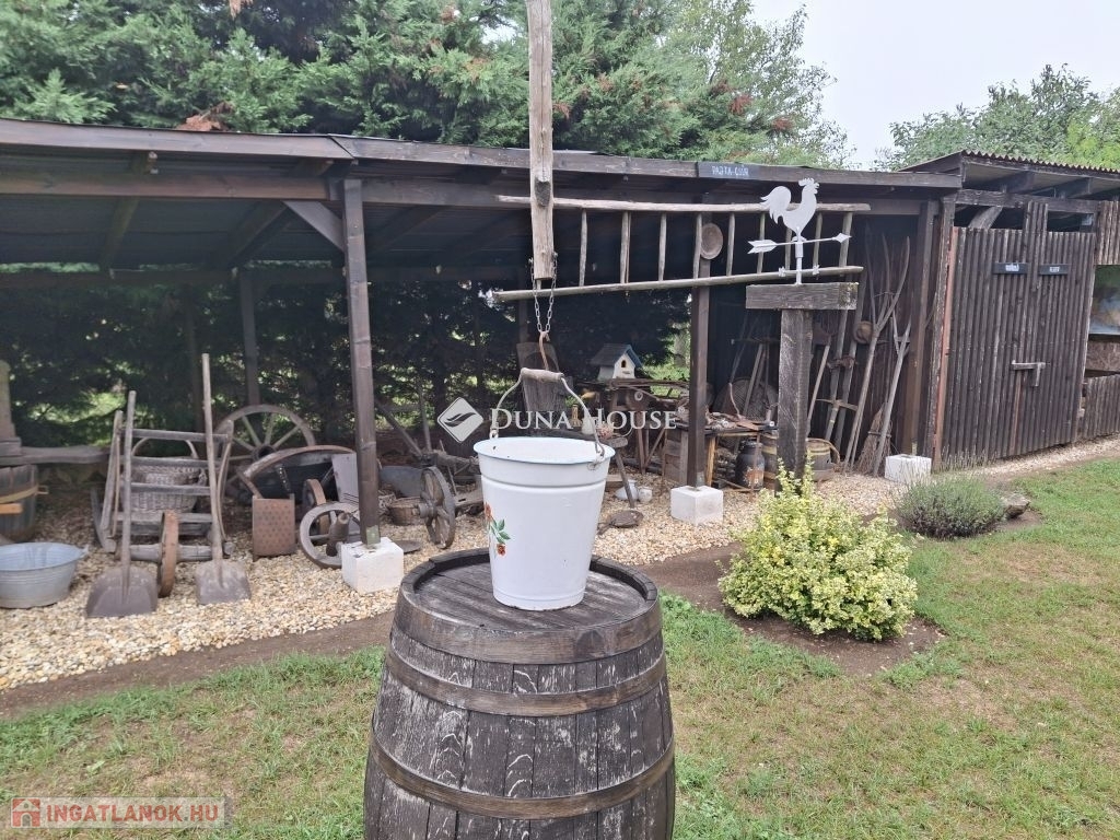 Egy különleges hangulatú Sváb parasztház, nyugodt környezetbenGánt feletti településrészen eladó, két külön lakrésszel és bejárattal rendelkező, az elmúlt tizenöt évben folyamatosan fejújított parasztház. Az ingatlan egyedi és utánozhatatlan.A lakórész alapterülete 100 négyzetméter, mely egy nagy telken helyezkedik el.A parasztház vert vályogfallal az 1940-as években épült, utolsó felújítása 2024-ben a napelemekkel befejeződött. Hogyan fér meg a régi és a modern technika?A ház biztonságát kamera-rendszer őrzi. Mindenhová új, szigetelt ablakszárnyak kerültek fel. Elkészült három egységből álló 36 000 literes víztározó is, melyet házi vízműrendszer köt össze.A fejújítás során a közmű, a villanyvezetékek, fűtésrendszer, új burkolatok cserélje történt meg. Új fa elgázosító kazán került beüzemelésre. Az ingatlanban a kazánfűtésen kívül hűtő-fűtő klíma is beépítésre került, ezzel igyekeztek energetikailag javítani.A szigetelt, új tetőre az eredeti cserép került vissza. A gerendás tetőszerkezet megemelésével a ház nagyobb belmagasságot kapott.A két lakrészből külön kijárás van az udvarra, két fürdőszoba, több szoba és melléképületek javítják a lakók igényeit.A bútorok, berendezés nagy része marad, egy része megvásárolható.A ház 1920-1970 évekbeli nagy eszközgyűjteménnyel rendelkezik, korabeli tájház jelleggel.A ház mellet medence és pince található.Az épület végén a házzal egybeépítve garázs és víztározó.Vele szemben műhely, szerszámtároló, illetve fatároló is van.Amennyiben hirdetésem felkelette érdeklődését, kérem keressen bizalommal.Az ingatlan hátsó részén díszkert kialakítva.Gyermekeknek hinta, csúszda, épített játszóvár az udvaron.VEVŐINKNEK MINDEN SZOLGÁLTATÁS DÍJMENTES!