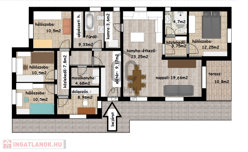 • Külön mosókonyha a családi logisztika megkönnyítésére