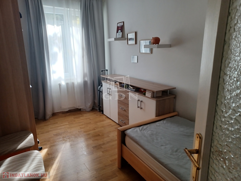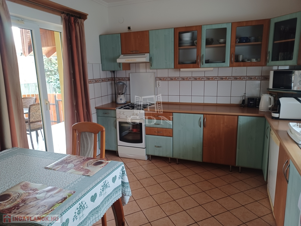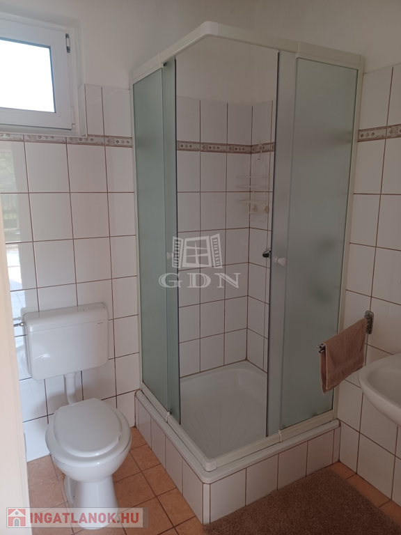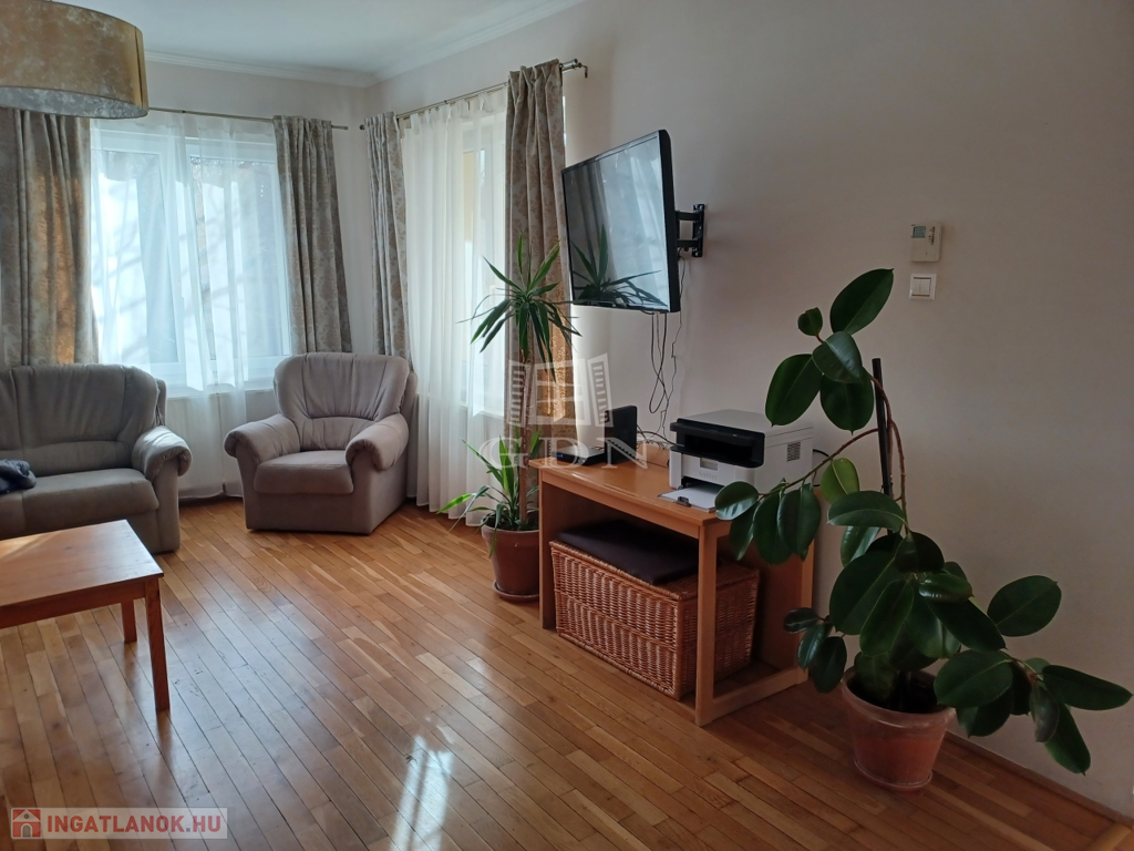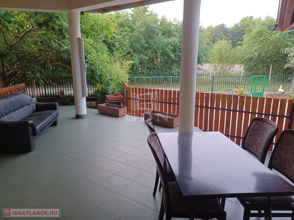 A szépen karbantartott kertben fúrt kút, biciklitároló, fatároló és kerti kiülő biztosítja a további kényelmet. Az udvaron három gépkocsi számára van beállási lehetőség, de az utcán is problémamentes a parkolás.