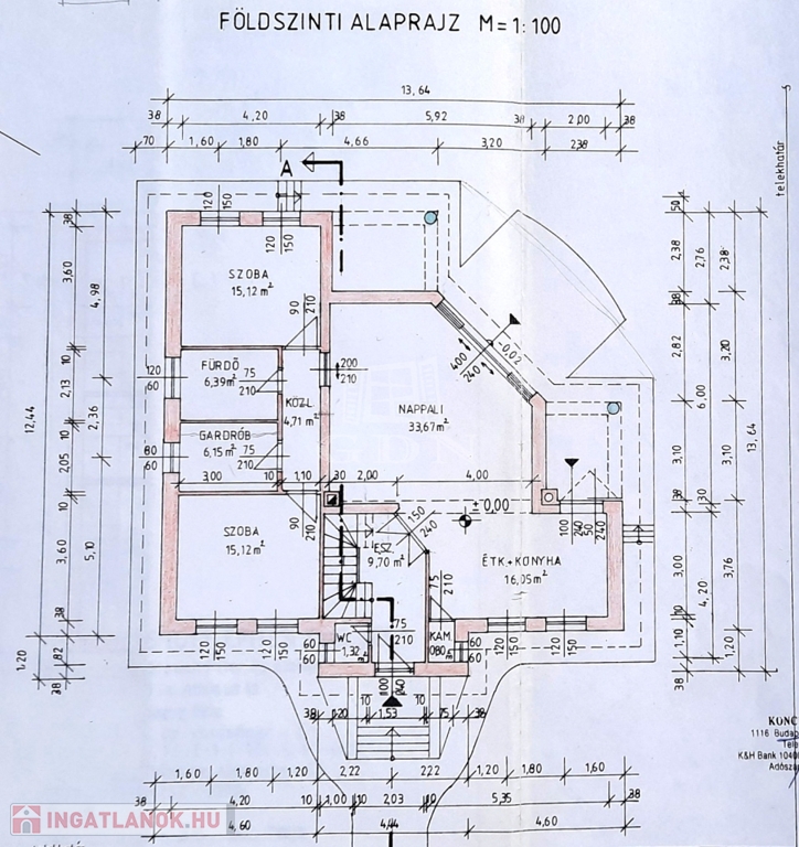 Szerkezet: 40 cm vastag téglafalak, monolit vasbeton alap és födém