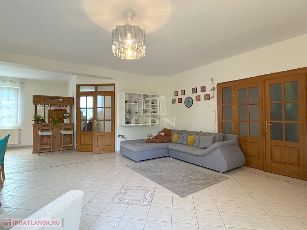 Nyílászárók: 2023-ban cserélt, háromrétegű üvegezésű, fa hatású fóliázott műanyag ablakok a földszinten
