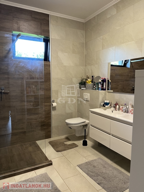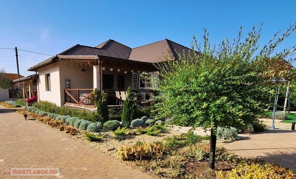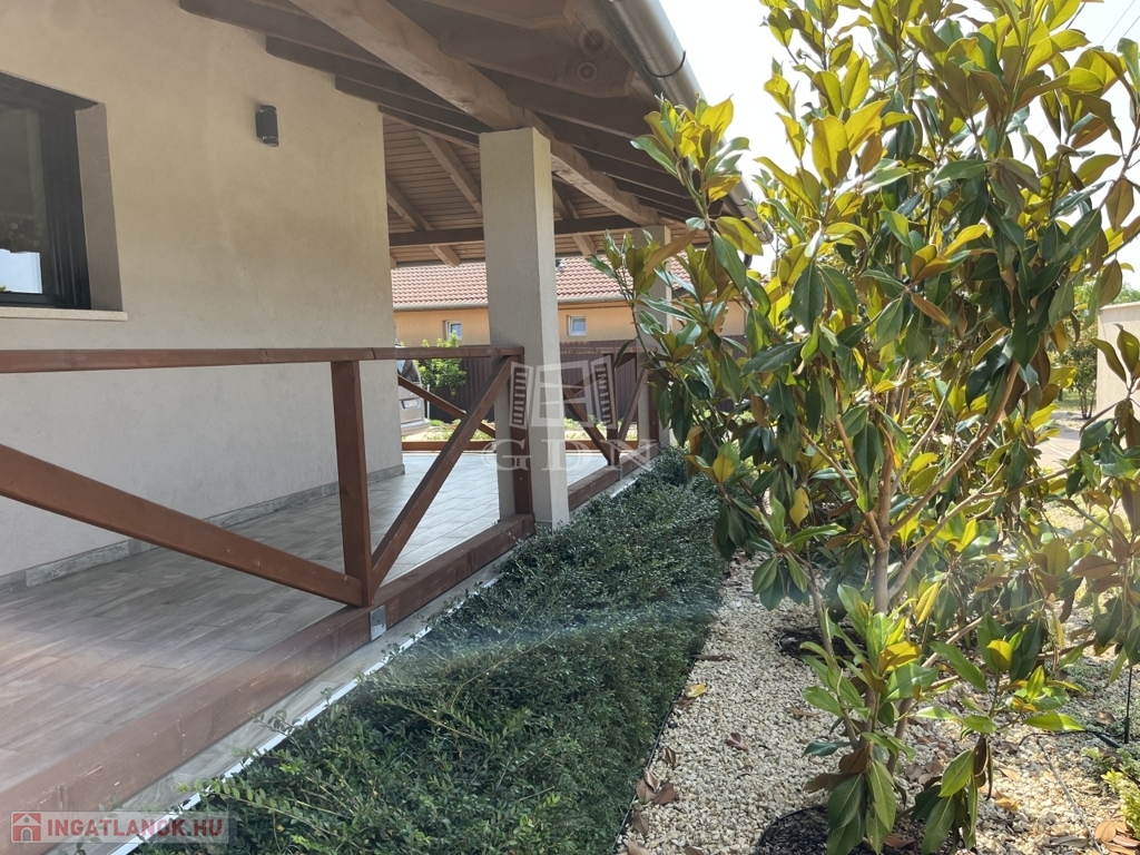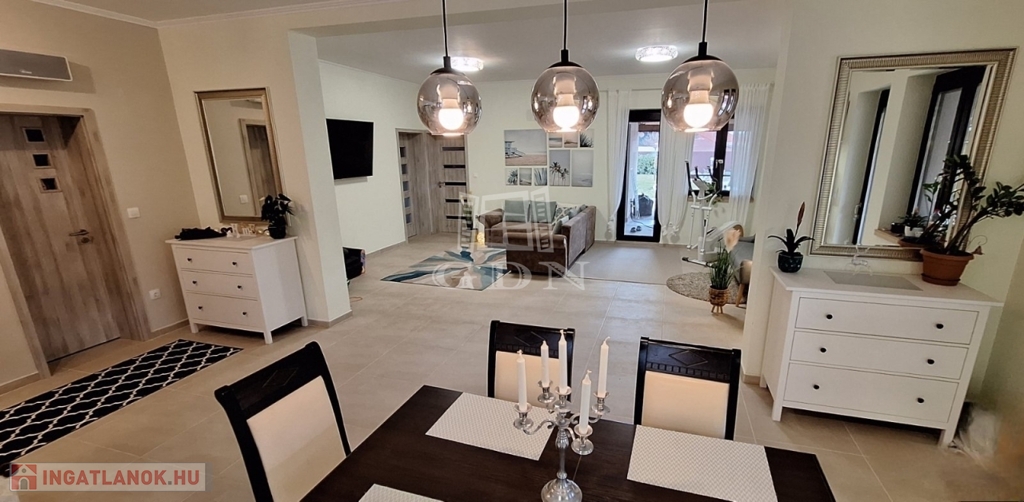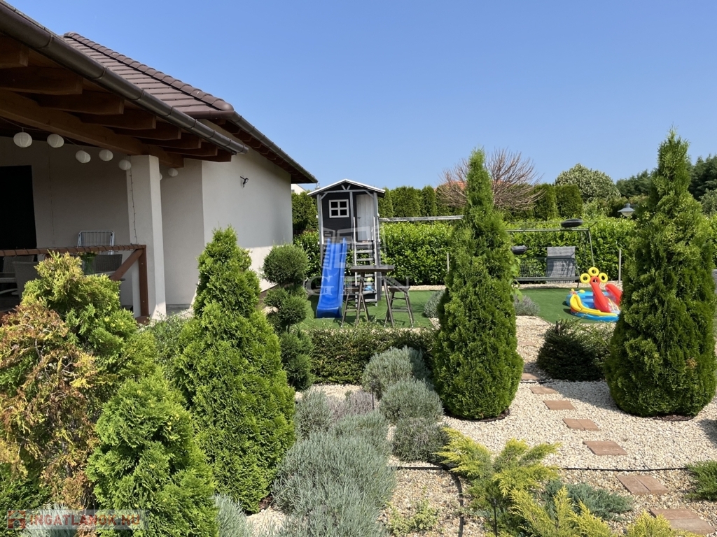 Világos, nagyvonalú terek, 68 m²-es nappali-központ, külön szülői lakrész – minden a kényelmes, jól élhető otthonról szól. Minőségi kivitelezés, átgondolt részletek, gondozott kert.