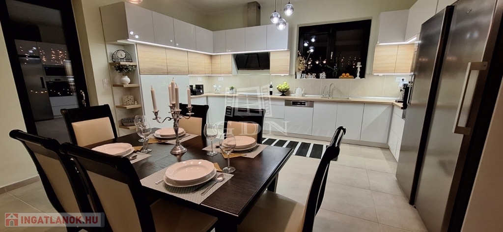 Dinnyés egyik nyugodt utcájában eladó egy 157 m²-es, modern családi ház – pár percre a Velencei-tó-tól.