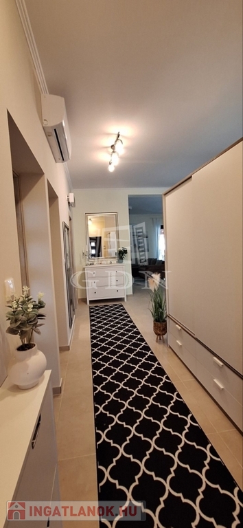padlófűtés + klíma, elektromos redőnyök, riasztó, automata öntözés, robotfűnyíró, elektromos kapu, játszótér, grillterasz.