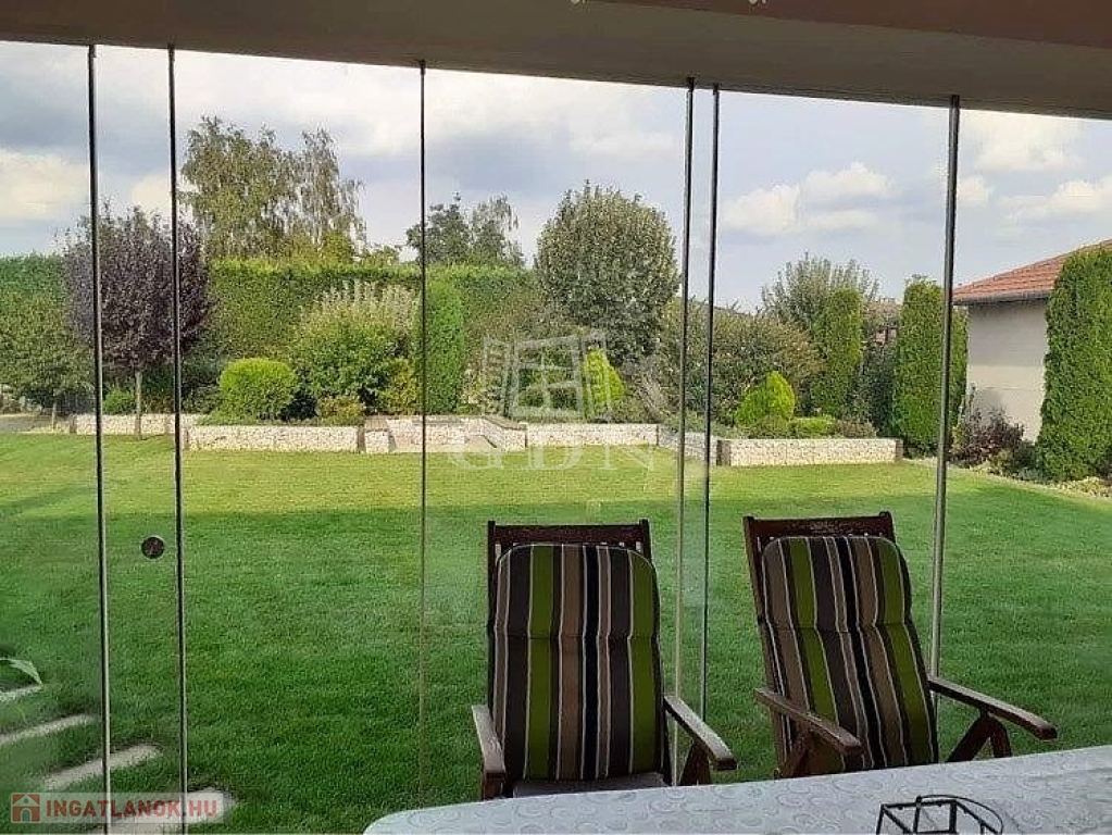 A 25 nm-es fedett, fűthető terasz eltolható üvegfelületekkel megnyitható a kert felé, de ezen kívül egy 22 nm-es nyitott terasz is rendelkezésünkre áll, amin egy elektromos napellenző gondoskodik az árnyékról.