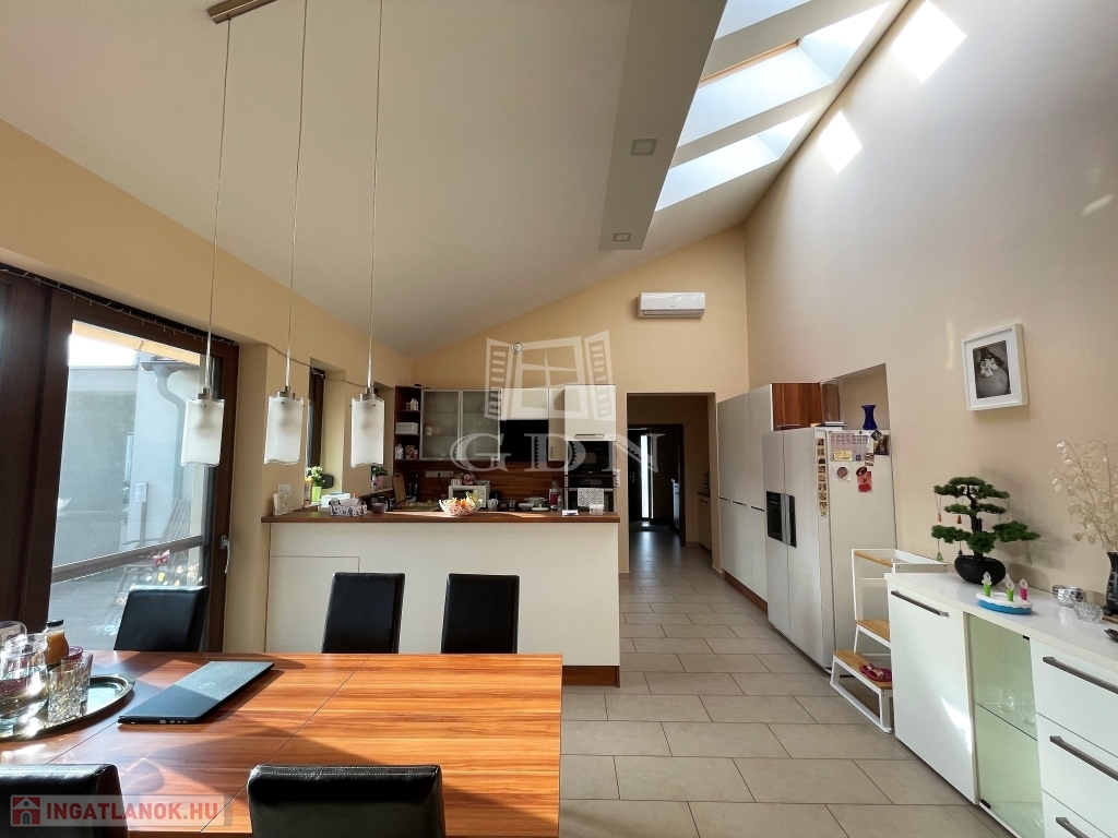 Eladó a Velencei-tó szomszédságában Gárdony-Dinnyés településen, újépítésű övezetben egy gyönyörű, összesen 275 nm-es, egyszintes, összkomfortos családi ház.
