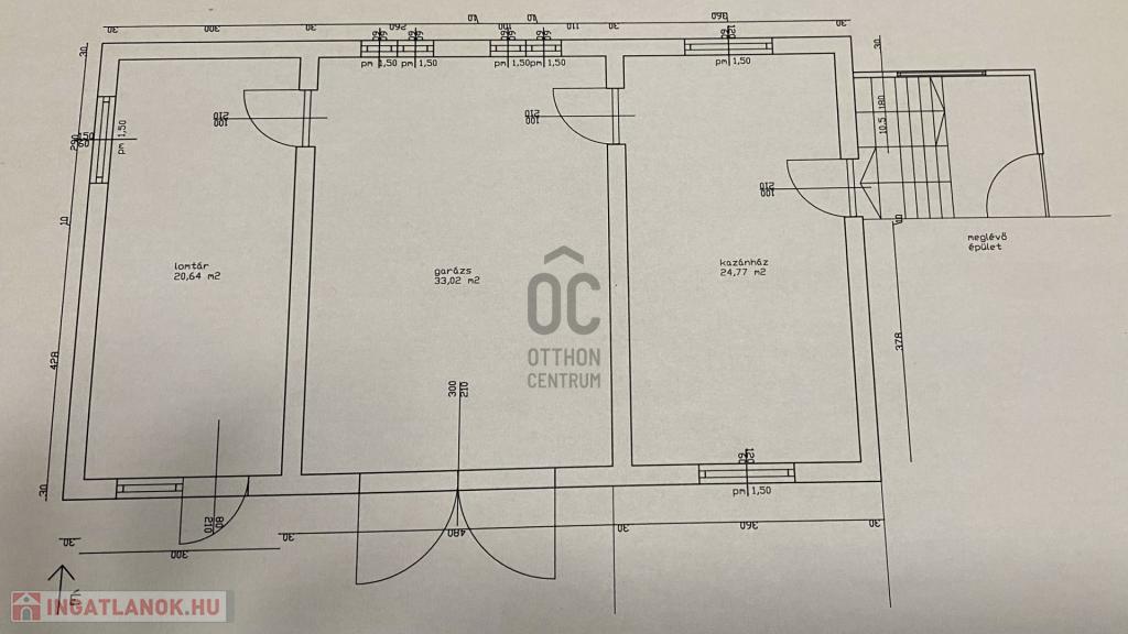 A lakótérből is megközelíthető alagsor kb. 60 m²-es, ahol több tárolóhelyiség és garázs kapott helyet — ideális megoldás akár barkácsoláshoz vagy tároláshoz.
