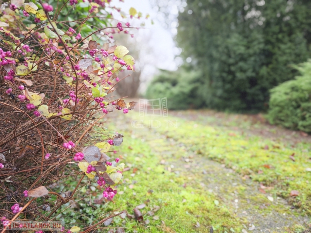 A kertben számos termő gyümölcsfa található, többek között szelídgesztenye, mogyoró, cseresznye, füge, körte, alma és dió, így a telek nemcsak tágas, hanem értékes és hangulatos is.