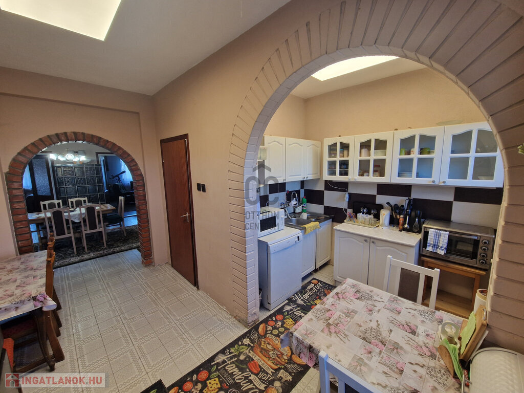 - Helyiségek a földszinten: 3 szoba, konyha, étkező, közlekedő, fürdőszoba, külön WC, nappali, tároló, kazánház