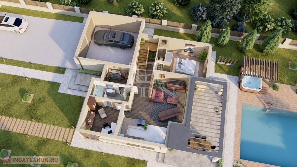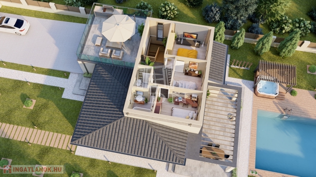 A hirdetésben szereplő ingatlan a Pluto típusház. A Pluto ház ára a kulcsrakész állapot alapján került kiszámításra.