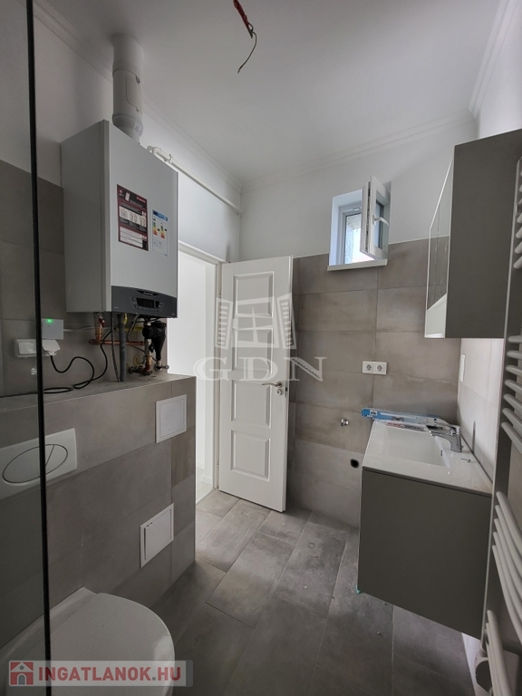 Rendkívül jó elosztású, tágas, világos terek jellemzik. Műszakilag és esztétikailag megújult ingatlanban kettő ideális méretű szobán kívül nappali, étkező, konyha, fürdőszoba került kialakításra. A házba érkezőket nagy méretű előszoba fogadja. A felújítás során a víz-lefolyó rendszer, villanyhálózat, fűtésrendszer, hideg-meleg burkolatok cseréje is megtörtént. Fűtéséről, meleg vízellátásáról Ariston kondenzációs kombi gázkazán gondoskodik, radiátoros hőleadással. Ablakai fokozottan hang-és hőszigeteltek. Bejárati ajtaja több ponton záródó, biztonsági ajtó. A beltéri ajtók is újak. Homlokzatára, lábazatára szigetelés került. A háztető is megújult, az ereszcsatornák is cserélve lettek. Az ingatlan azonnal költözhető. Ha bővebb tájékoztatást szeretne, vagy megtekintené az ingatlant, kérem keresse irodánkat.