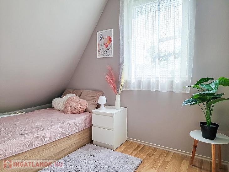 Az alsó szinten három tágas szoba, konyha, fürdőszoba, kamra és közlekedő található, míg a tetőtérben egy nappali, három hálószoba, konyha, kamra, fürdőszoba és közlekedő került kialakításra. A két szint jelenleg külön bejárattal rendelkezik, a tetőtér külső feljárattal van kialakítva, de belső lépcső kialakítására is van lehetőség.