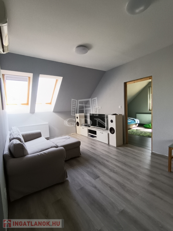Beépített tetőtér: 98 nm hasznos alapterület. Előtér, nappali, 3 szoba, fürdőszoba, mosdó, tároló, 2 nagy méretű erkély (az erkélyen a korlátok még hiányoznak, és a burkolat is).