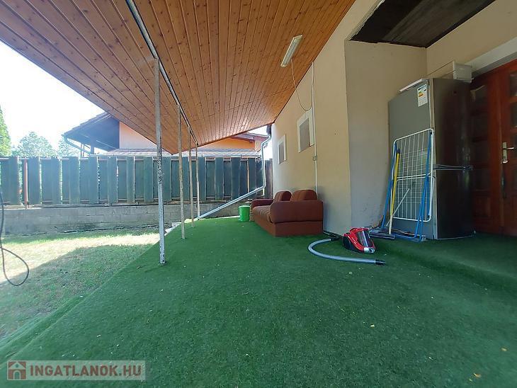 Az udvaron található egy 17 nm-es garázs szerelő aknával, valamint egy 20 nm-es fedett kocsibeálló is. A kert gondosan ápolt, örökzöldekkel és termő gyümölcsfákkal, ami igazán barátságossá teszi a környezetet.