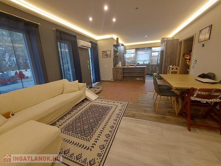 Modern, energiatakarékos ikerházfél eladó Felsőgöd–Neveleken, közvetlenül az erdő mellett.