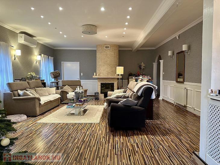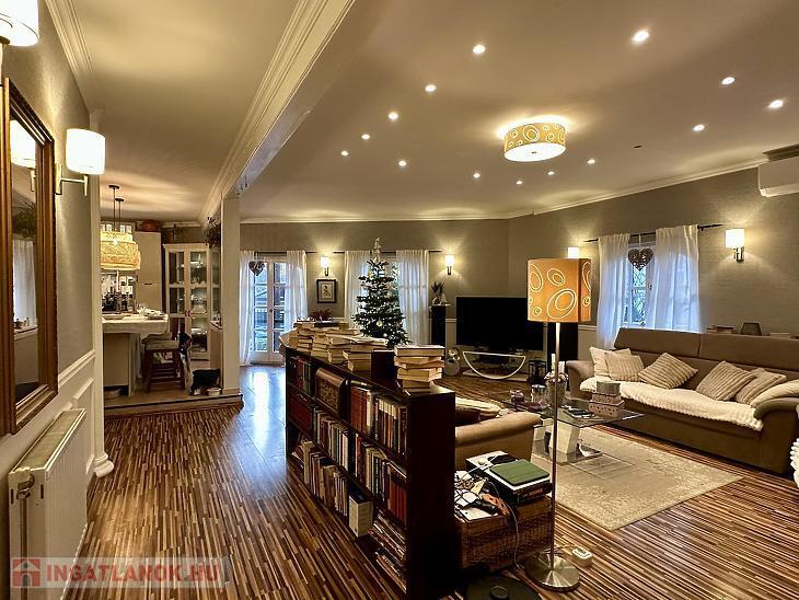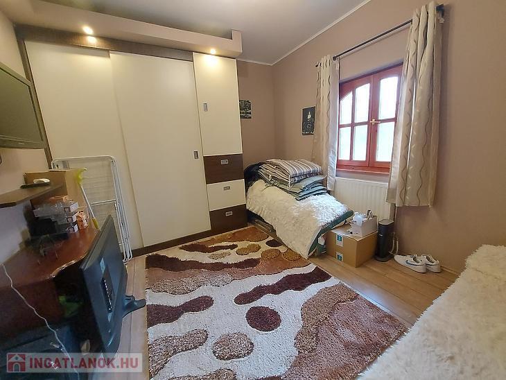 A szobák laminált parkettával, a többi helyiség járólappal vannak burkolva, a nyílászárók fa típusú termo üvegesek, a nappali és az egyik hálószoba klímával felszerelt.