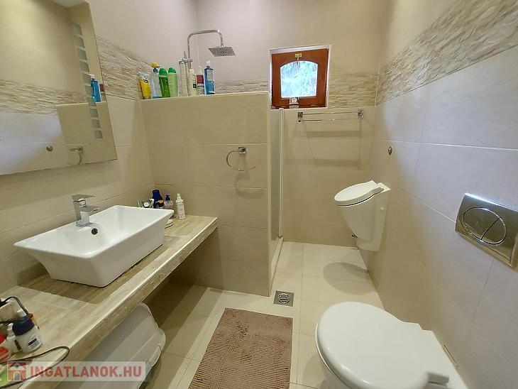 A telken van még egy könnyűszerkezetes 70 nm-es 2 szintes melléképület, amelynek a földszinti része tárolásra a fenti lakhatási célra van kialakítva, továbbá egy 7x4 méteres gépesített medence és még két autó számára fedett kocsibeálló is rendelkezésre áll.