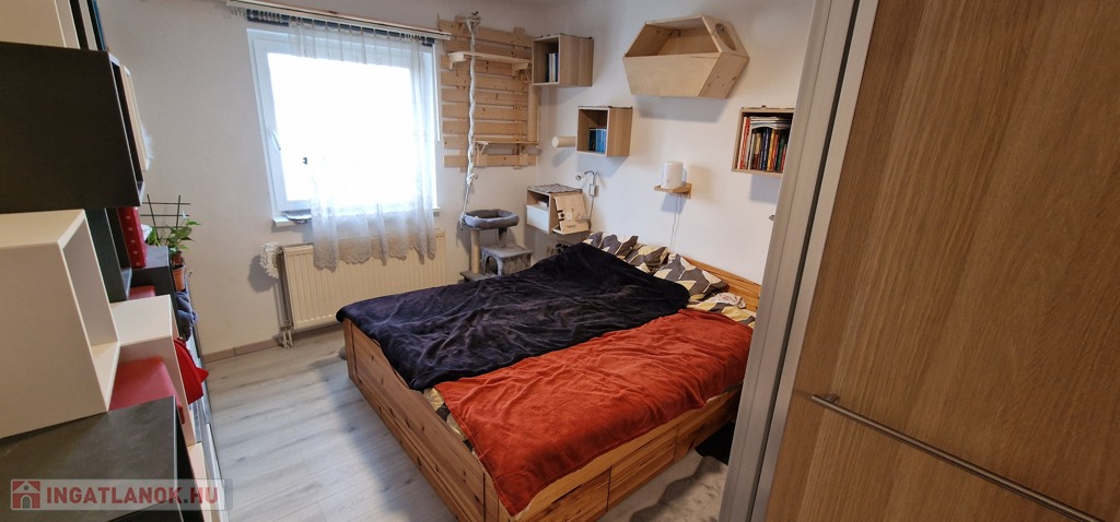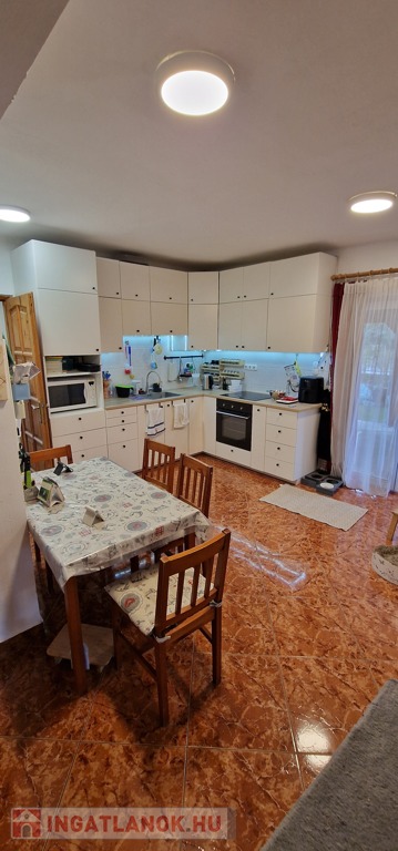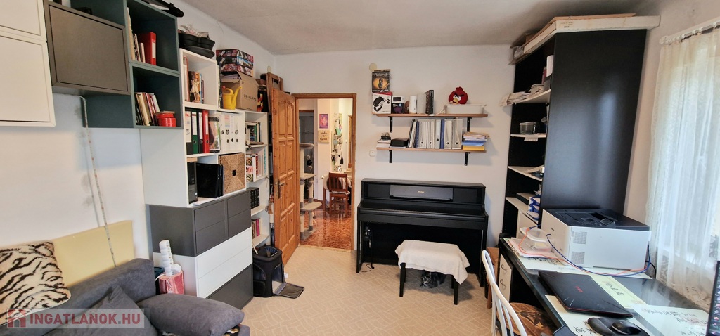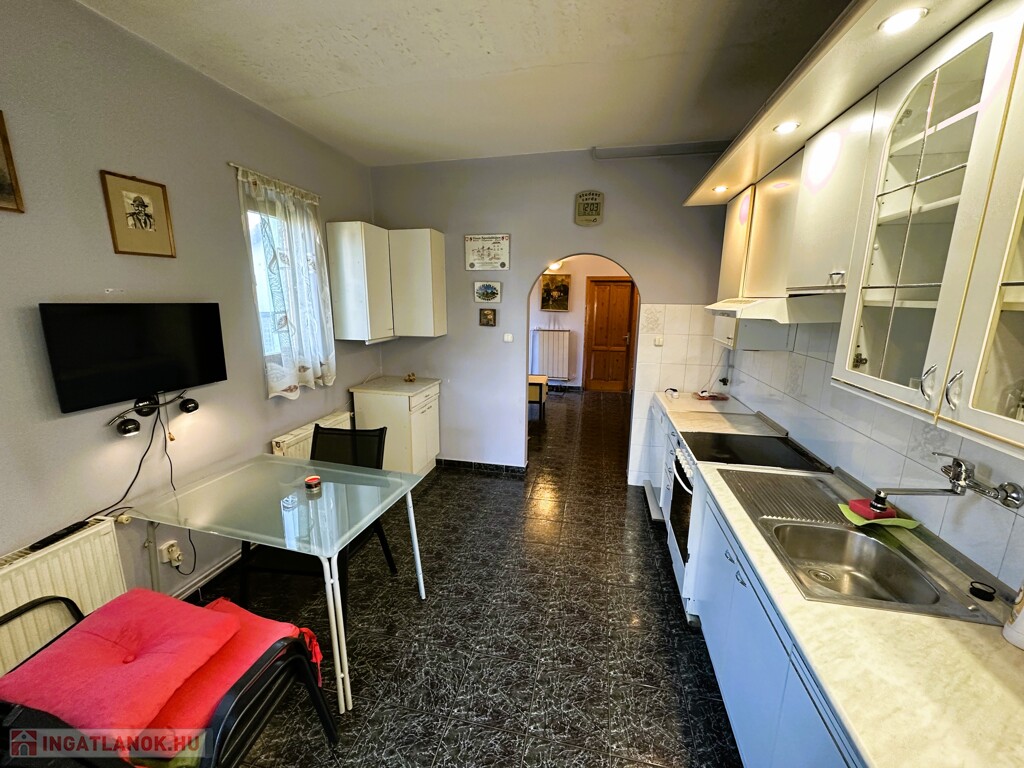 A kisebbik ház nettó 65,2m 2 alapterületű, összkomfortos és 2 különnyíló szoba helyezkedik el benne. 2000-ben épült 30-as téglából, majd 2005-ben nyerte el jelenlegi ház formáját. 2019-ben kapott 10cm kőzetgyapot szigetelést. A fűtésről és a meleg vízről egy kombi turbó Saunier Duval gázcirkó gondoskodik. A konyhában, étkezőben, valamint a fürdőszobában padlófűtés került kivitelezésre, a többi helyiségben pedig radiátor biztosítja a hőleadást. A nyári melegek enyhítésére a 2020-ban felszerelt MDV 3.5kW-os A++ besorolású, energiatakarékos, hűtő fűtő klímával lehet védekezni. A tető borítása kerámiacserép és padlástérrel is rendelkezik. A tavalyi évben elkészült közel 30 m2-es fedett terasz pedig kiváló lehetőséget nyújt egy nyári grillezésre, de egy baráti összejövetel helyszíneként is tökéletesen színtere lehet.