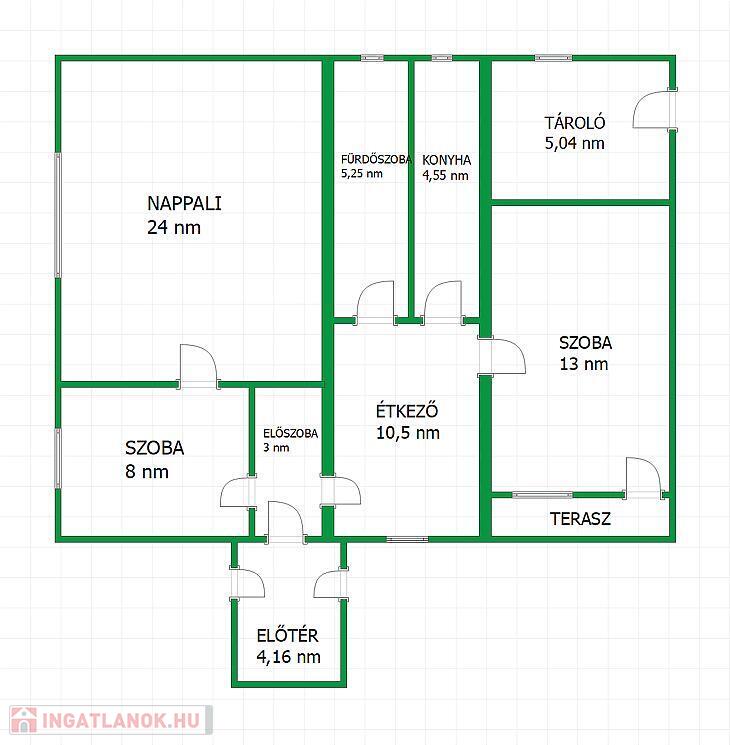 Elosztása: 3 db hálószoba, konyha, étkező, fürdőszoba
