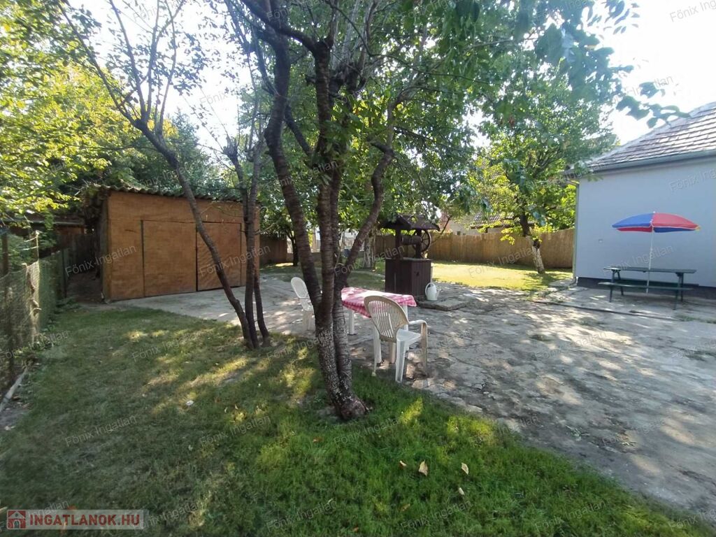 A telek két utcáról is megközelíthető, kertben 16 m²-es melléképület található, amelyben villany van kiépítve, továbbá két kisebb fatároló és fúrt kút is rendelkezésre áll.