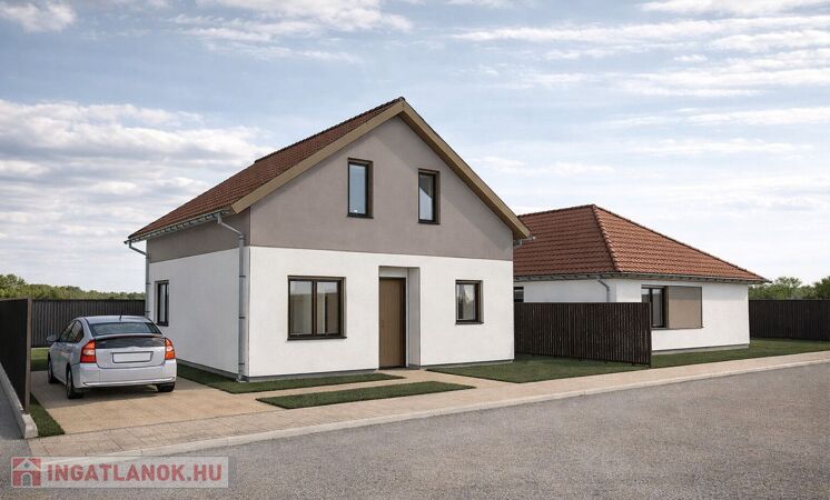 - Földszint: előtér, nappali-konyha-étkező, kamra/tároló, egy szoba, fürdőszoba + terasz.