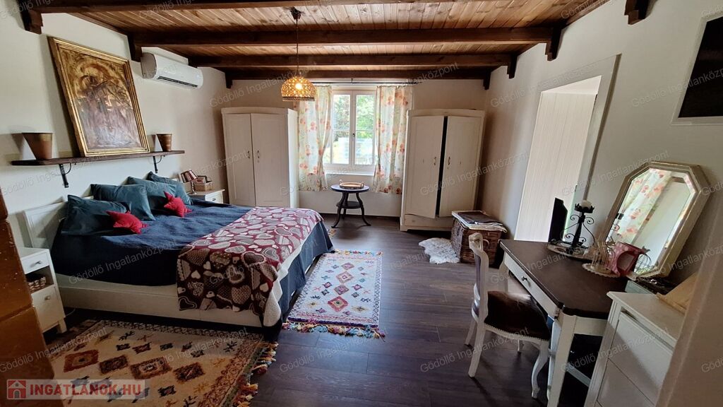 A 120nm-es ingatlan nappalival, konyhával, kamrával, étkezővel, közlekedővel, 3 tágas nagyszobával, szülői szobából nyíló gardróbbal, két fürdővel (egyik kádas, másik zuhanyzós), tárolóval és fedett verandával rendelkezik, ill. tartozik hozzá egy 30nm-es borospince és egy 70nm-es kisház is, amely akár külön lakrésznek is használható.