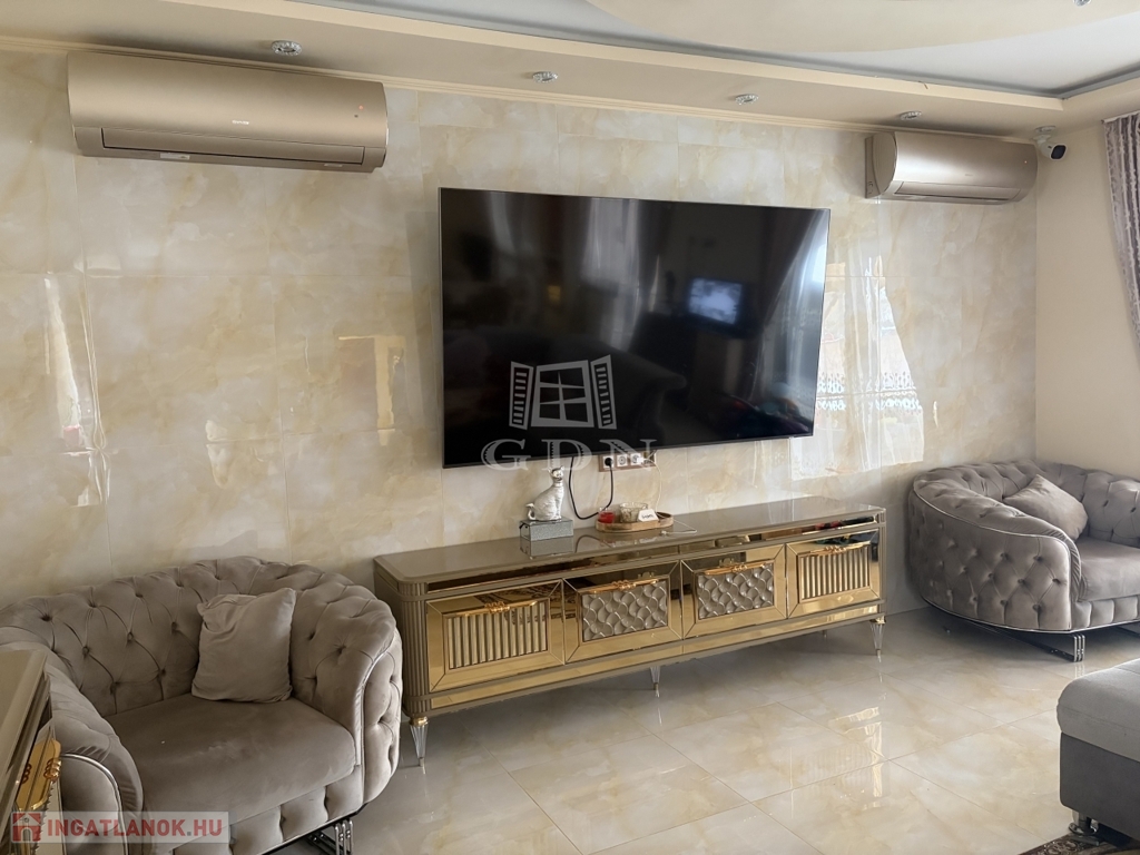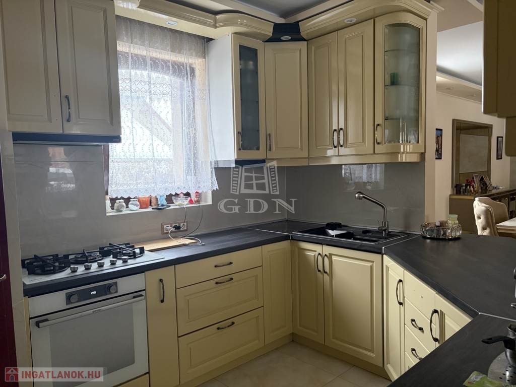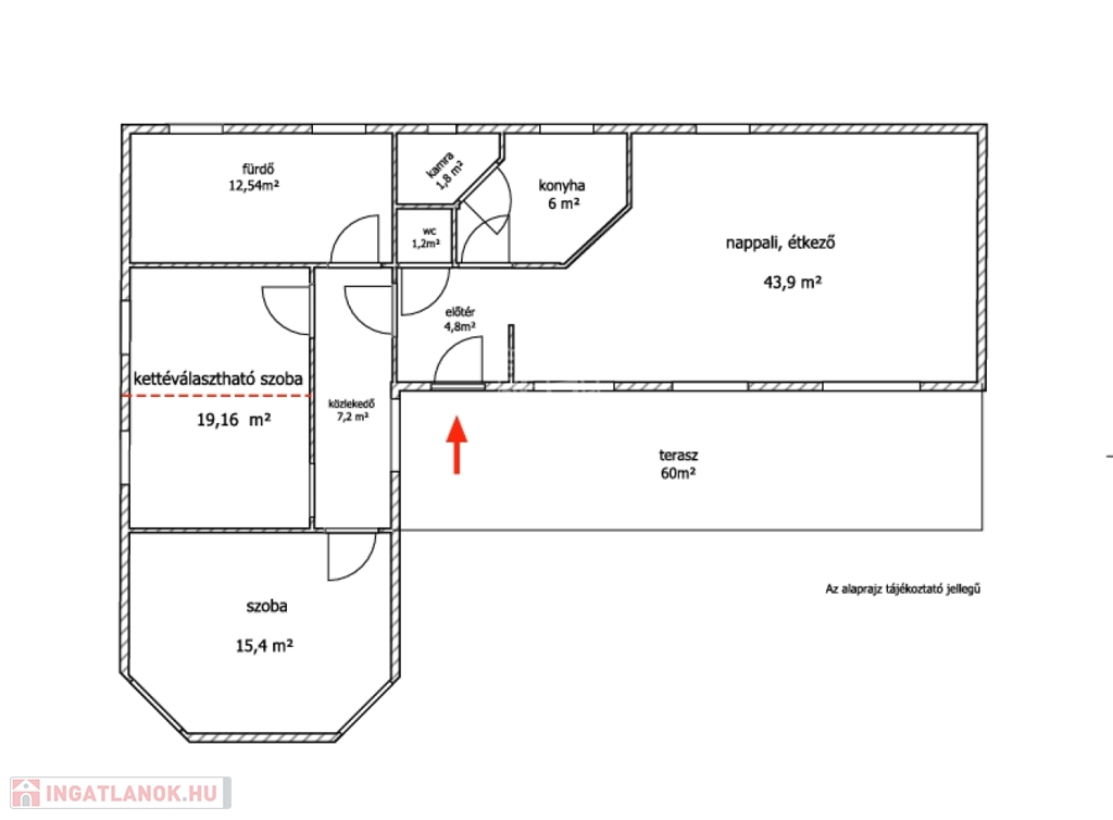 Felosztása: amerikai konyhás nappali, 2 hálószoba, előtér, nagy méretű fürdőszoba mosdóval, különálló mosdó, spájz.