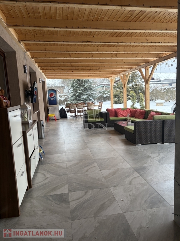 A házhoz 500 nm saját kert tartozik, az utcafront felől, előkerttel helyezkedik el. Az eredeti nagy méretű telek hátsó részén, egy nyaktaggal csatlakozó (ikresített) másik ház keül megépítésre, amely szintén önálló udvarral fog rendelkezni. és 4 méter széleskocsibejáró a megvételre kínált ház hátljánál fog húzódni, így biztosítva az intimitást.