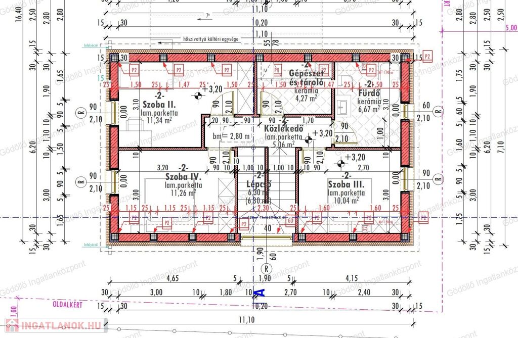 - Tetőtér: 3 szoba, közlekedő, fürdő, gépészeti helyiség.