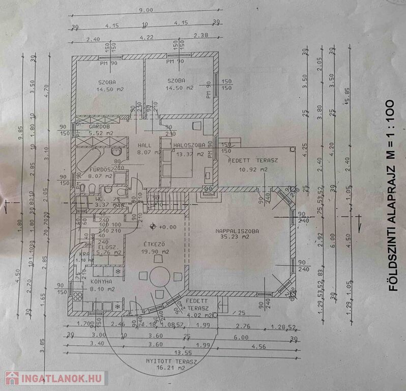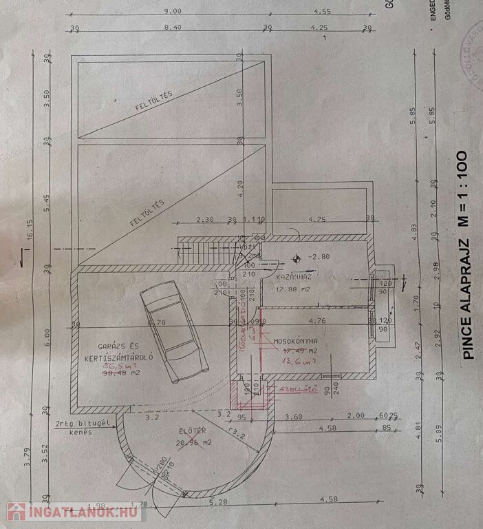 Az épület 178nm hasznos alapterületű, 3 + 2 szobával, jó állapotú, téglából épült szerkezet.