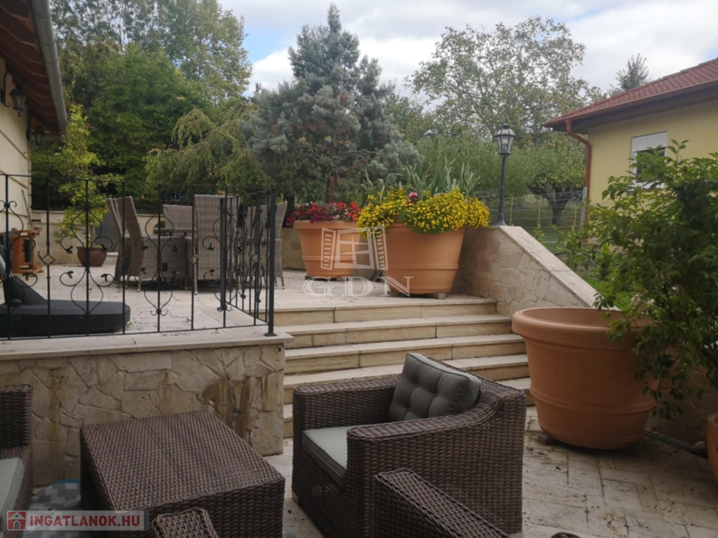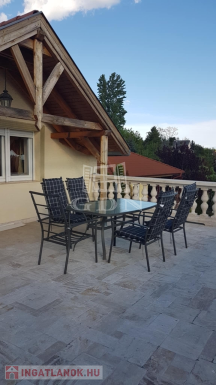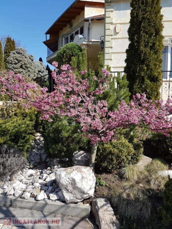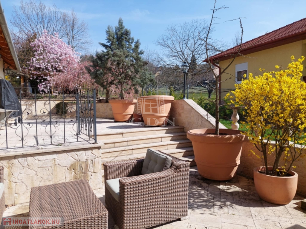 Az épület 1754 négyzetméteres, szépen parkosított telken helyezkedik el, és több, összesen 235 négyzetméter napfényes terasz veszi körül, ahonnan gyönyörű kilátás nyílik a környező tájra.