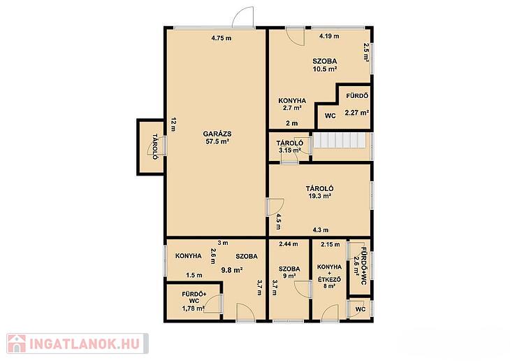 A szinten 3 külön bejáratú garzonlakás is kialakításra került.