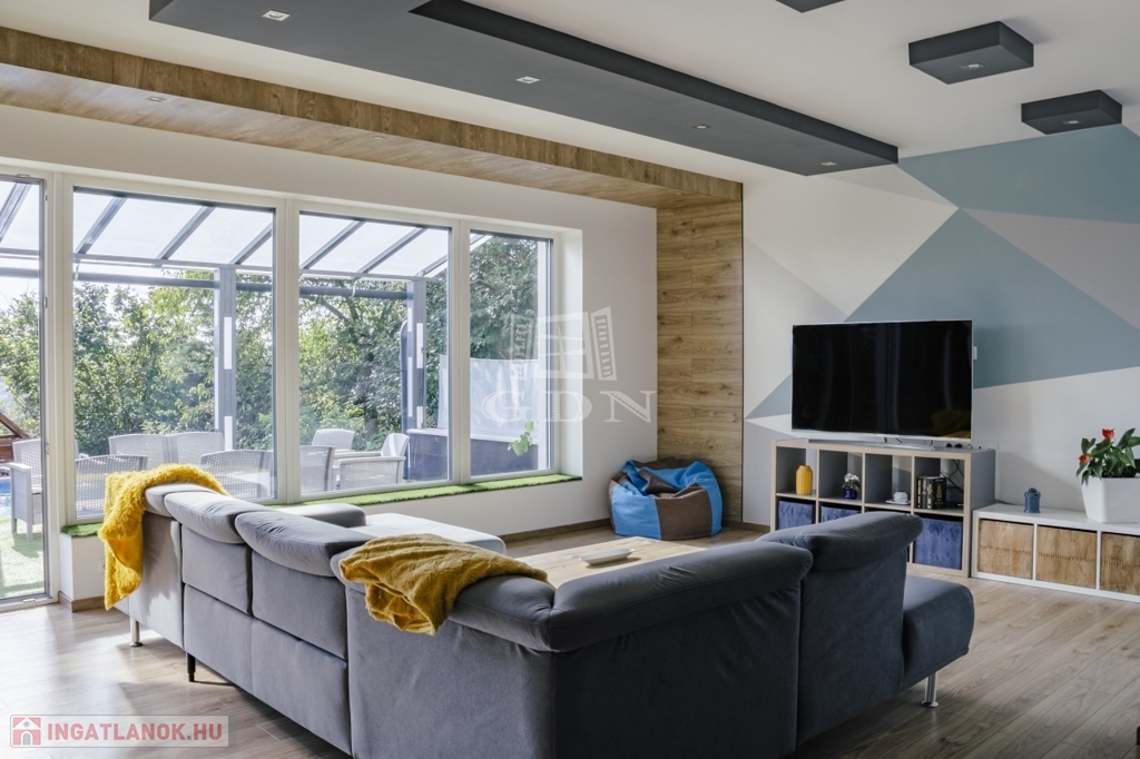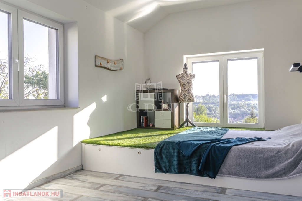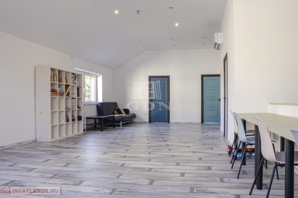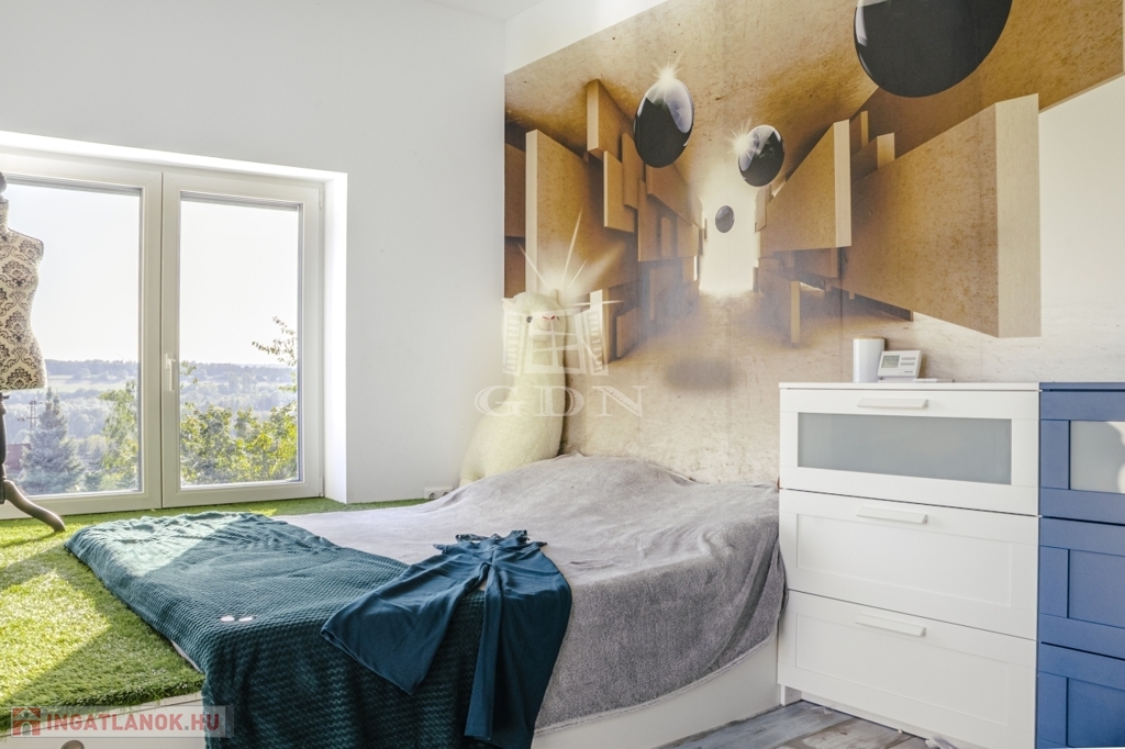 A ház jelenleg 5 szobás, a kialakítás lehetőséget ad további terek létrehozására – anélkül, hogy az összhatás sérülne.