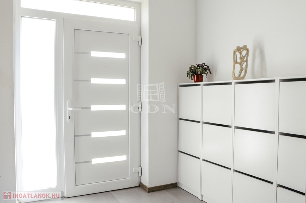 szellőzőrendszer, érzékelős kültéri világítás, tágas 55 m²-es kocsibeálló és 18 m²-es tároló.