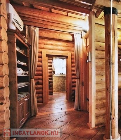 A ház 2009-ben készült el, 23 cm átmérőjű, szibériai téli vágású borovi fenyő rönkökből, szigetelése is lélegző, természetes anyag.